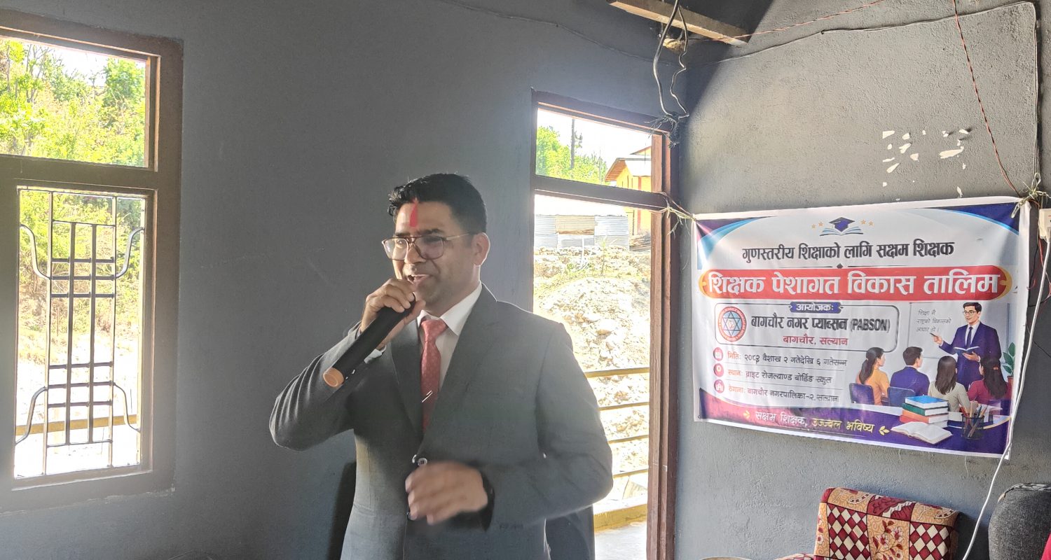 बागचौर नगरपालिका क्षेत्रभित्र सञ्चालित संस्थागत विद्यालयहरूको शैक्षिक गुणस्तर अभिवृद्धि गर्ने उद्देश्यले आजदेखि ५ दिने शिक्षक पेशागत तालिम कार्यक्रम ब्राइट रोजल्याण्ड इङ्लिस मिडियम स्कुल काे सभाहलमा सुरु भएको छ। निजी तथा आवासीय विद्यालय अर्गनाइजेसन नेपाल (प्याब्सन) बागचौर नगर कार्यसमितिको आयोजनामा सञ्चालन भएको यस तालिमले शिक्षण पद्धतिमा नविनता ल्याउने अपेक्षा गरिएको छ।